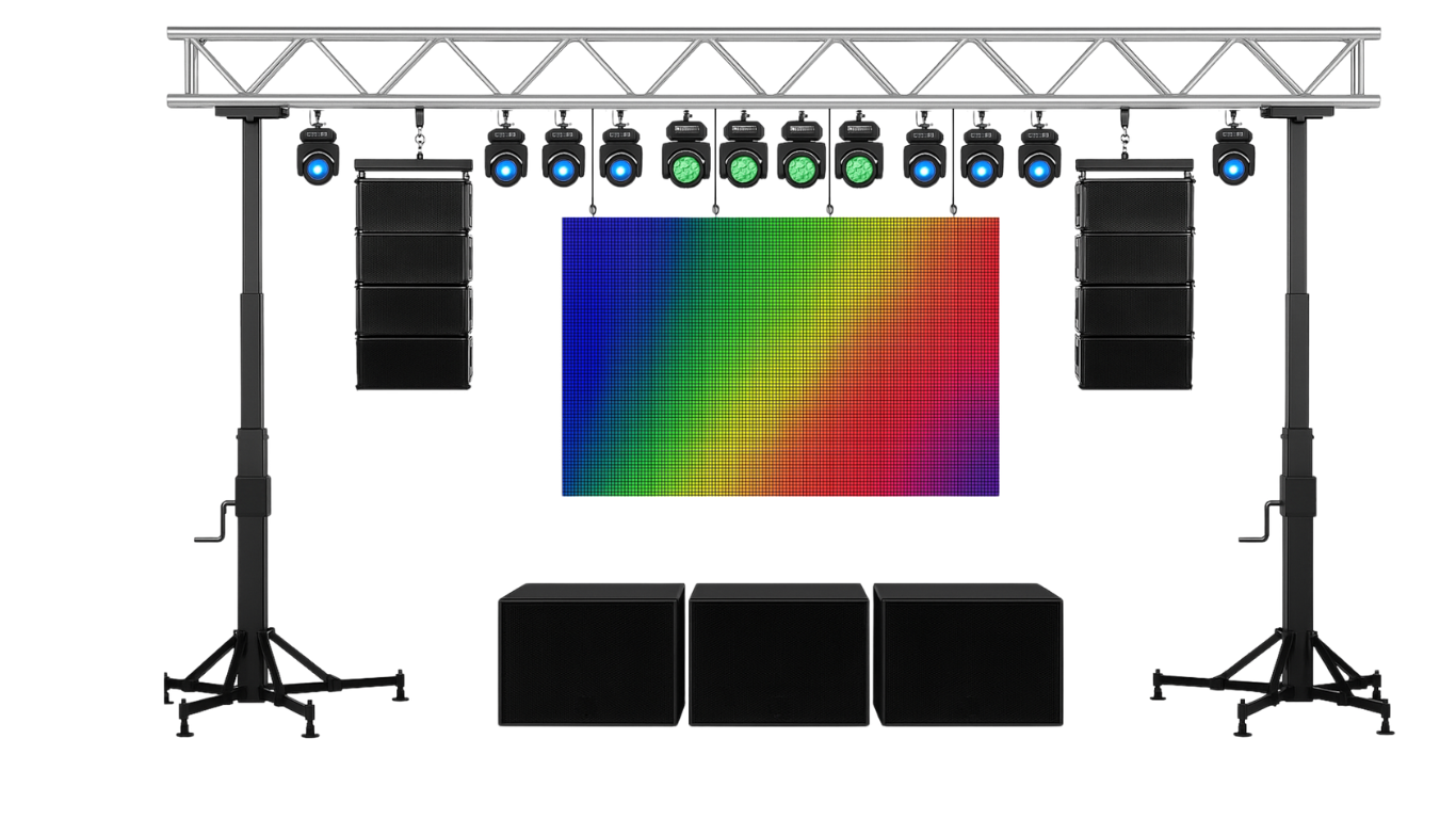 Contamos con una amplia variedad de packs personalizados de sonido, iluminación y escenarios, diseñados para garantizar un resultado impecable. Desde máquinas de humo y altavoces de alta fidelidad hasta pantallas LED y microfonía profesional, disponemos de todo el equipamiento técnico necesario para crear un evento espectacular.