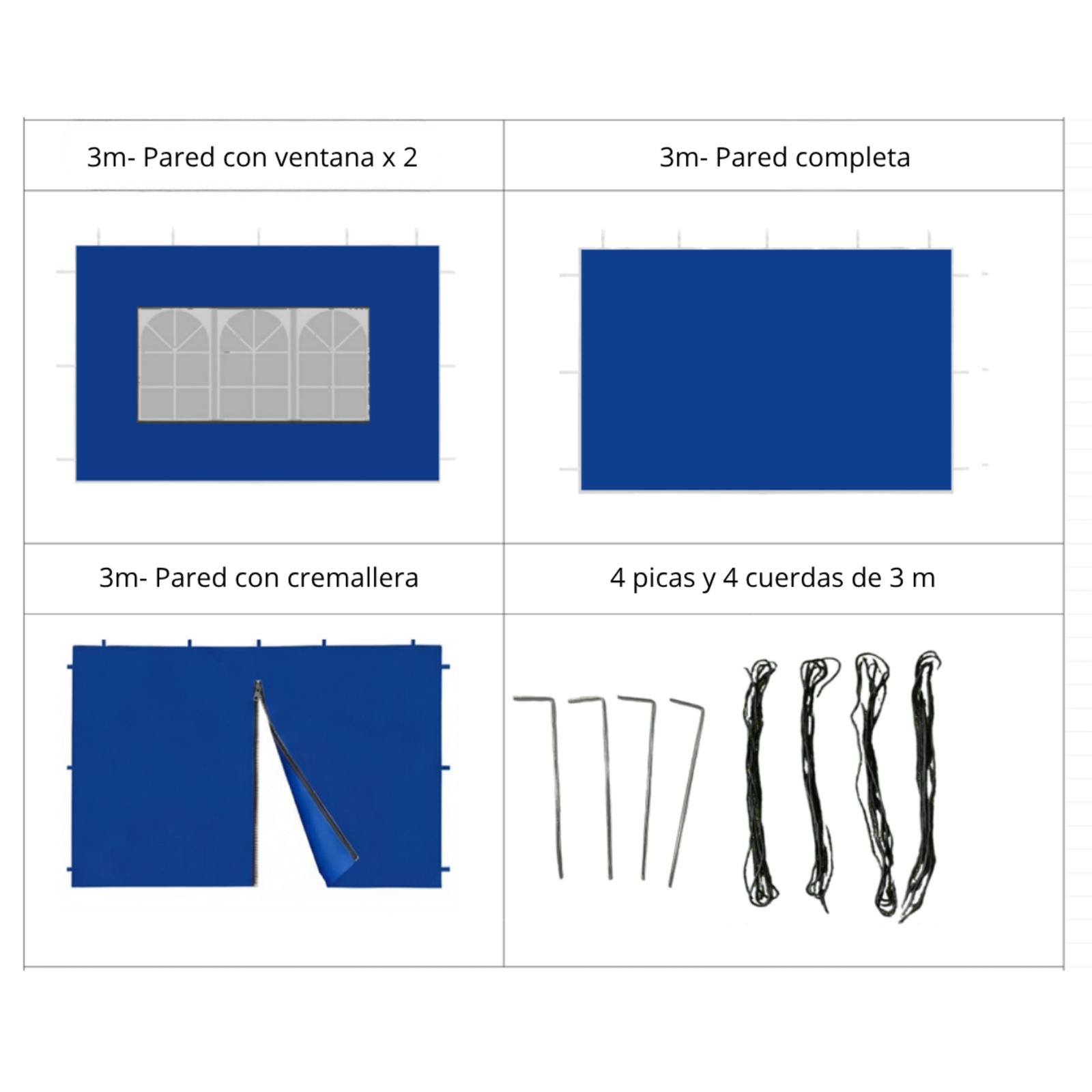 Carpa Plegable 3x3m Profesional Azul con 4 Paredes Modulares