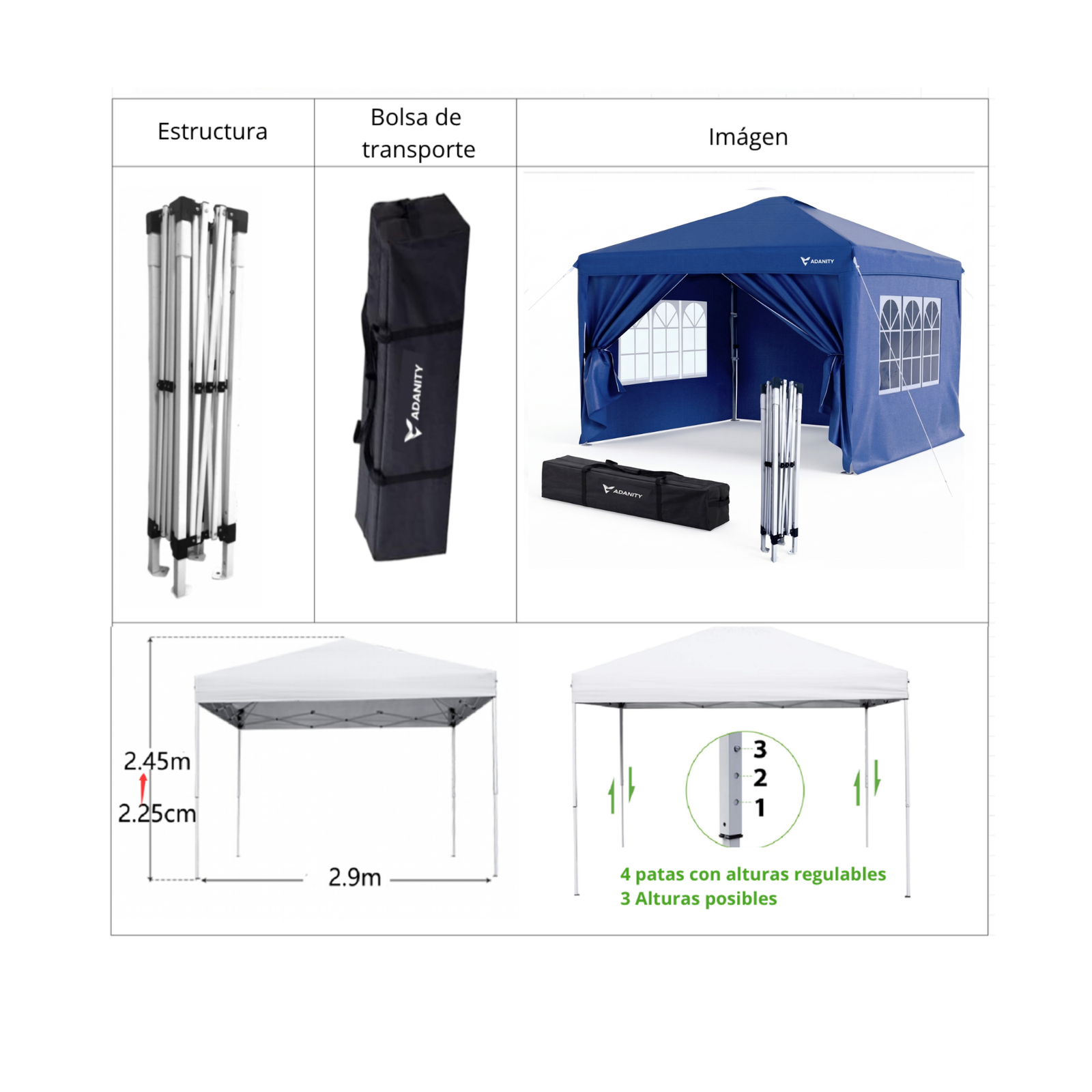 Si buscas fiabilidad para tus eventos itinerantes o un refugio duradero para tu jardín, la Carpa Plegable ADANITY 3x3m en color Azul es la herramienta definitiva. Su equilibrio perfecto entre ligereza para el transporte y solidez estructural la convierte en la opción favorita de feriantes, organizadores de competiciones y amantes del aire libre.