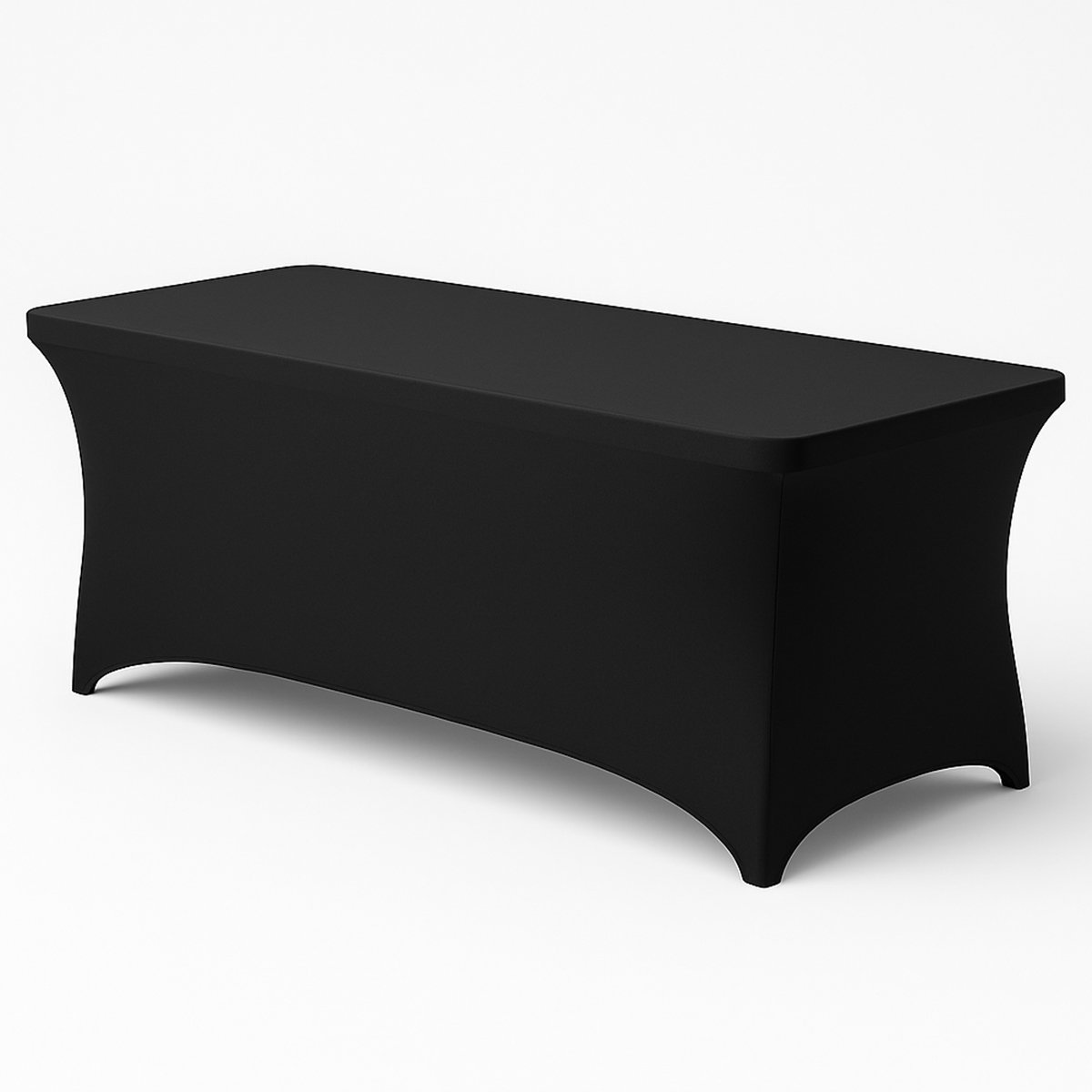 Mantel elástico negro de 1 unidad, confeccionado en poliéster y spandex de alta calidad. Ajuste perfecto para mesas rectangulares de 183 x 76 x 76 cm (6 pies). Resistente, lavable, antarrugas y con diseño moderno para eventos, bodas, banquetes y ferias.
