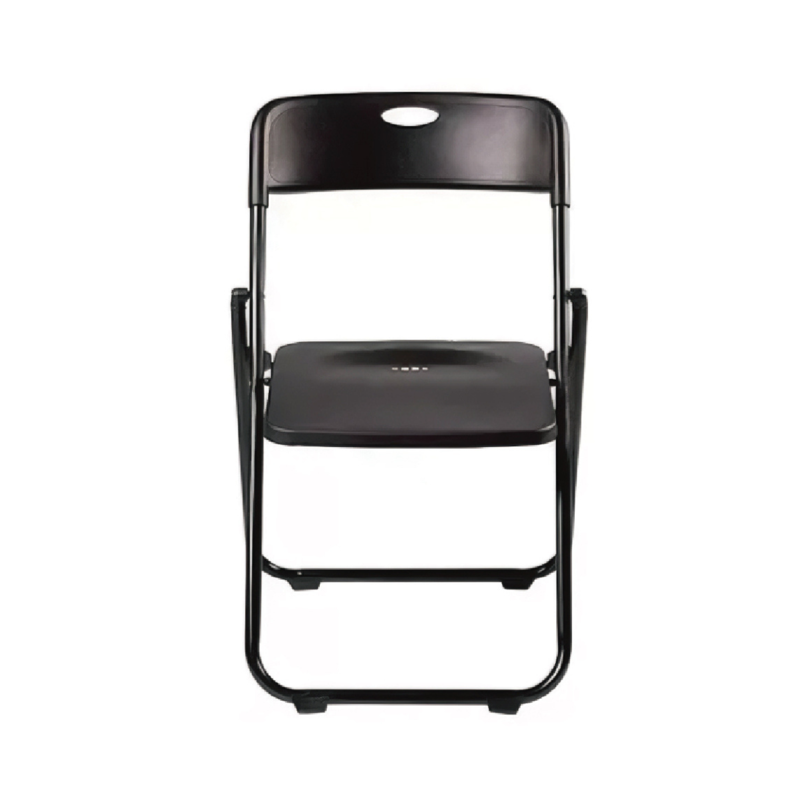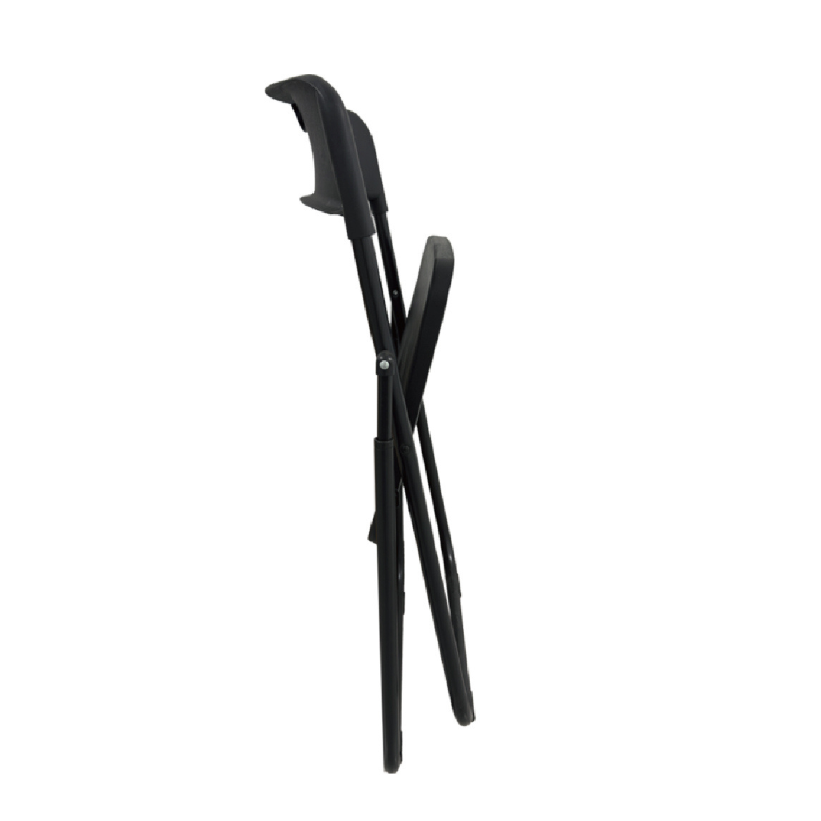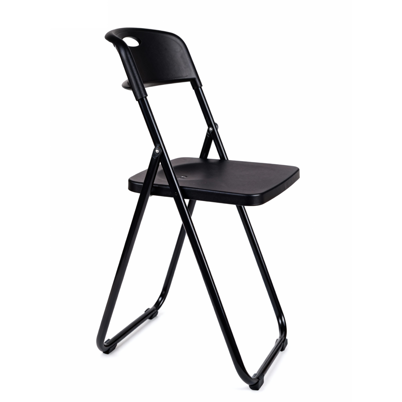 En el sector profesional, el mobiliario debe soportar el ritmo frenético de los montajes y desmontajes. Esta silla plegable negra ha sido diseñada pensando en la logística y la durabilidad extrema. Su chasis de hierro tubular garantiza que la estructura no ceda con el uso continuado, mientras que el asiento y respaldo de plástico inyectado ofrecen una superficie fácil de limpiar y mantener.