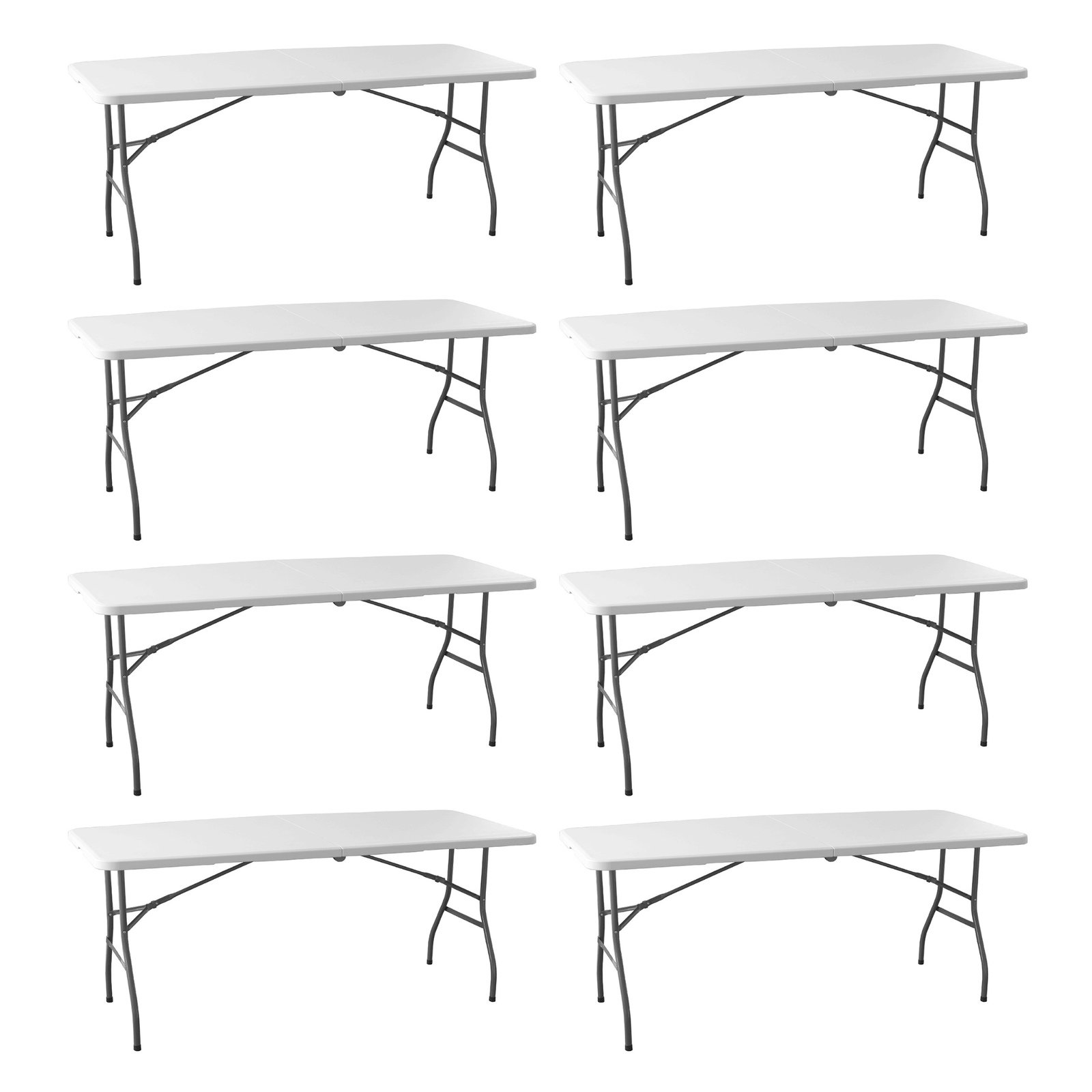 Mesa de jardín plegable blanca fabricada en HDPE con estructura de acero resistente. Ideal para exteriores, eventos y reuniones. Fácil de transportar, sin montaje y de diseño moderno.