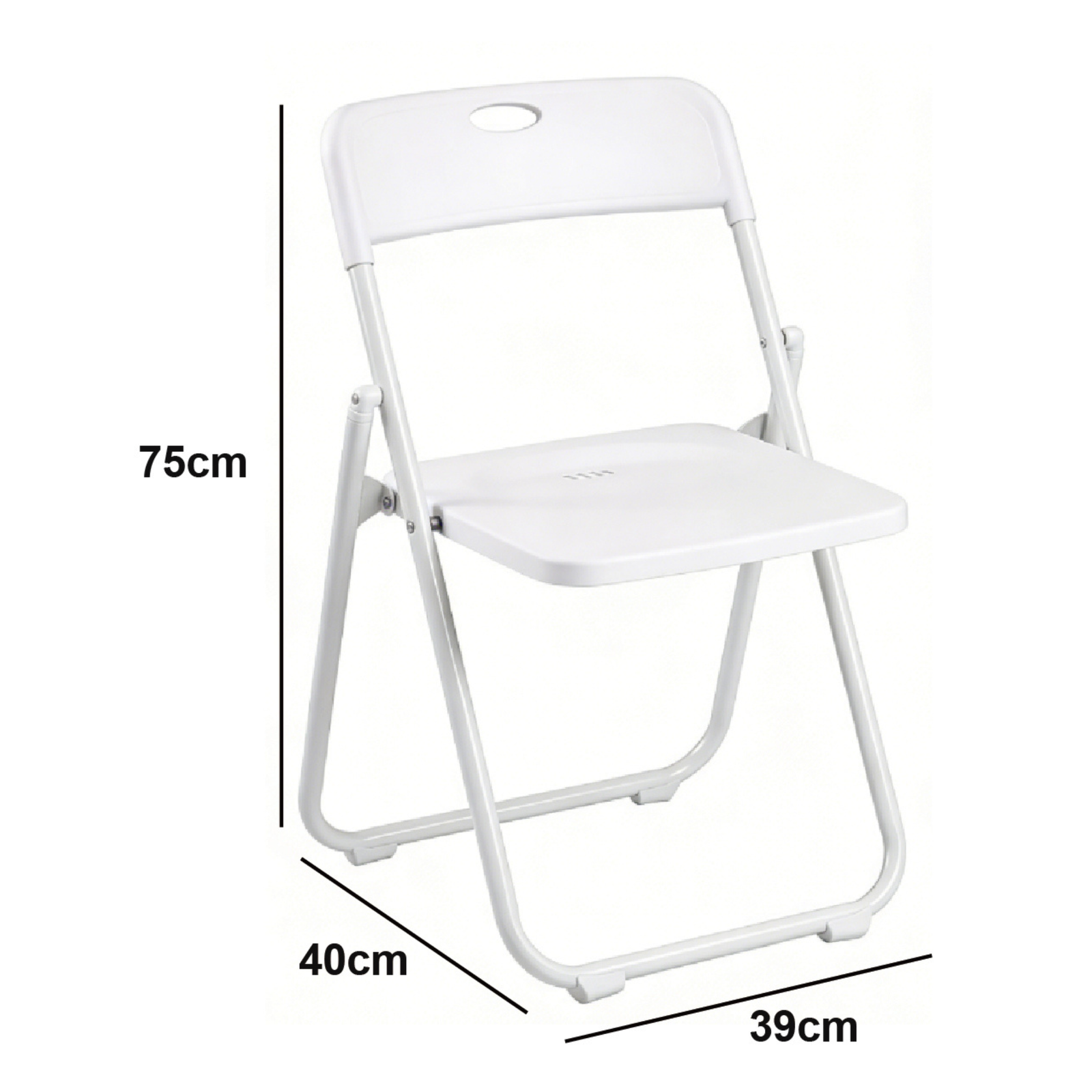 Luminosidad y practicidad en un solo mueble. Transforma cualquier espacio con esta silla plegable blanca de acabado impoluto. Su construcción mixta de hierro y resina plástica asegura estabilidad, mientras que su color blanco la convierte en la opción favorita para celebraciones al aire libre, bodas civiles y terrazas.